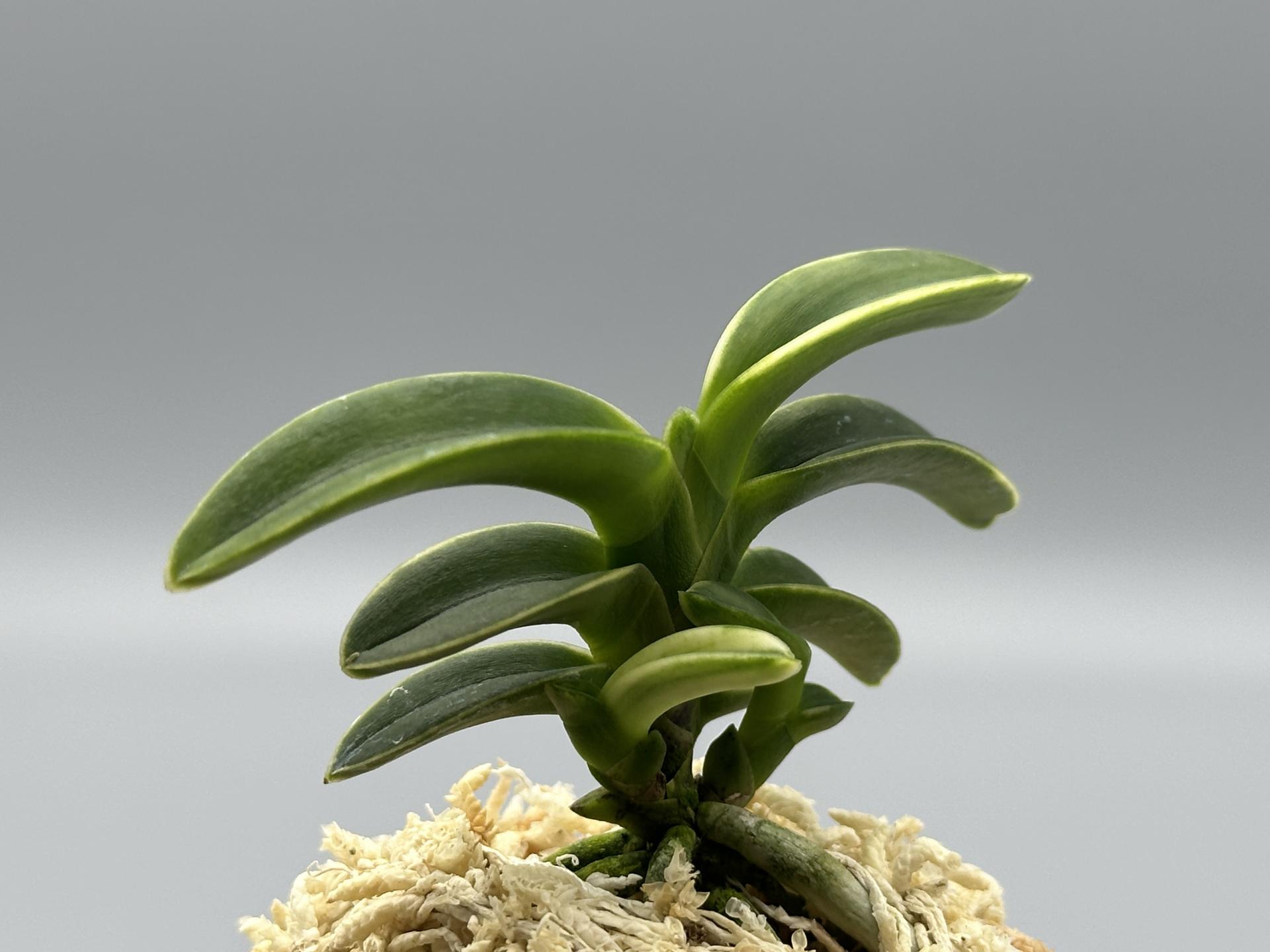 [취화전(翠華殿)]의 실생에서 작출된 것으로, 두엽에 호(縞)로 이예품(二藝品)이다. 최상의 예(藝)는 천엽이 새하얗게 나와, 나중에 어두워지는 소위 '백모단 예'다. 순백의 만곡 엽이 서로 겹쳐서 구름(雲)을 띄우면서 어두워지며, 나중에 흰색의 좁은 복륜으로 된다. 뿌리는 그 하얀색에, 선명한 루비색을 낸다. 하늘에 가설된 신들만이 건너는 구름다리처럼, 눈부실 정도로, 보는 사람의 마음을 사로잡는 절품이다. 2005년도 日本富貴蘭會 美術品評全國大會(제54회)에 출품되어 많은 사람으로부터 선망의 대상이 된 품종이다. 잎 모습 등 대부분은 모종과 같다. |