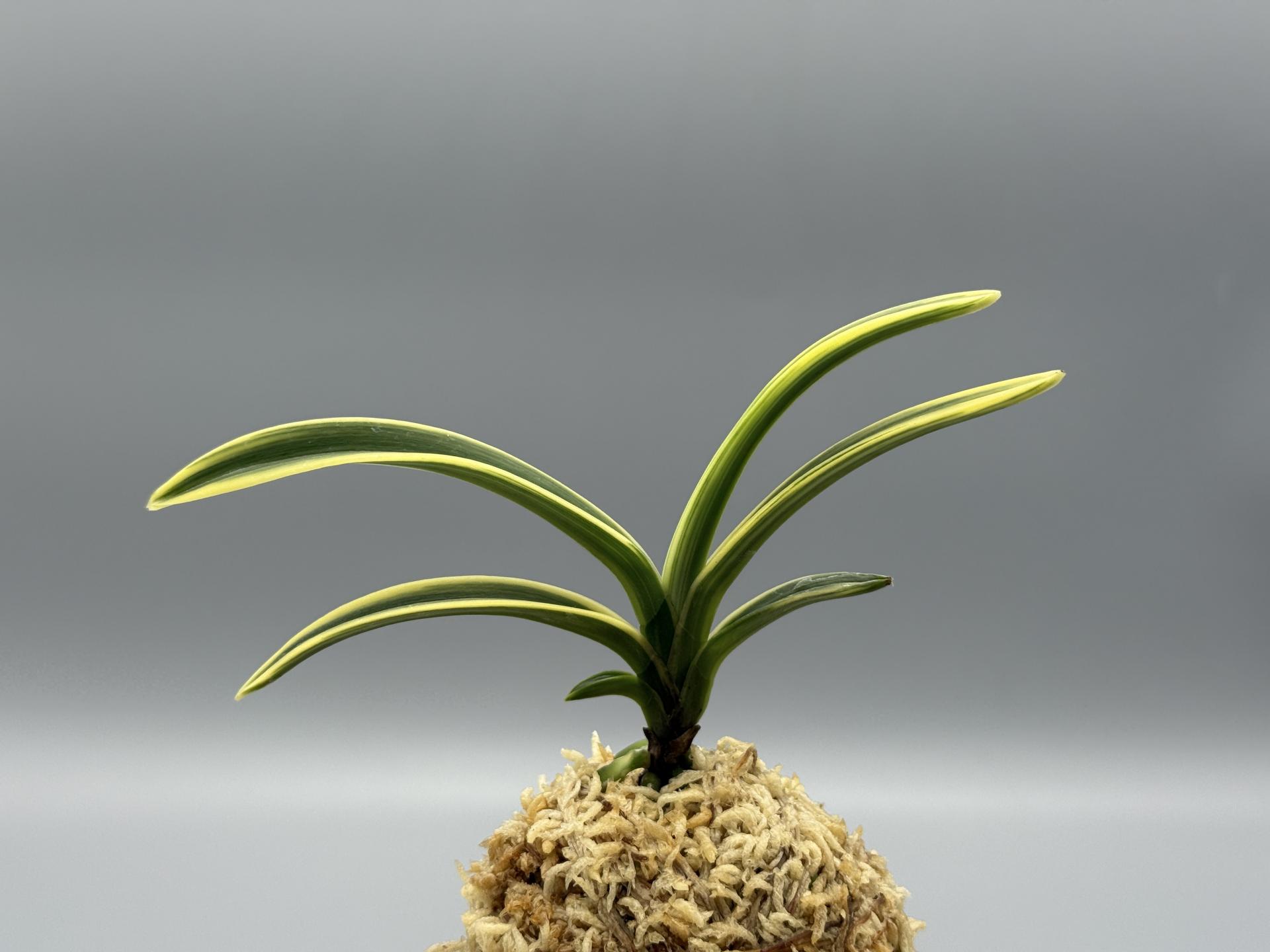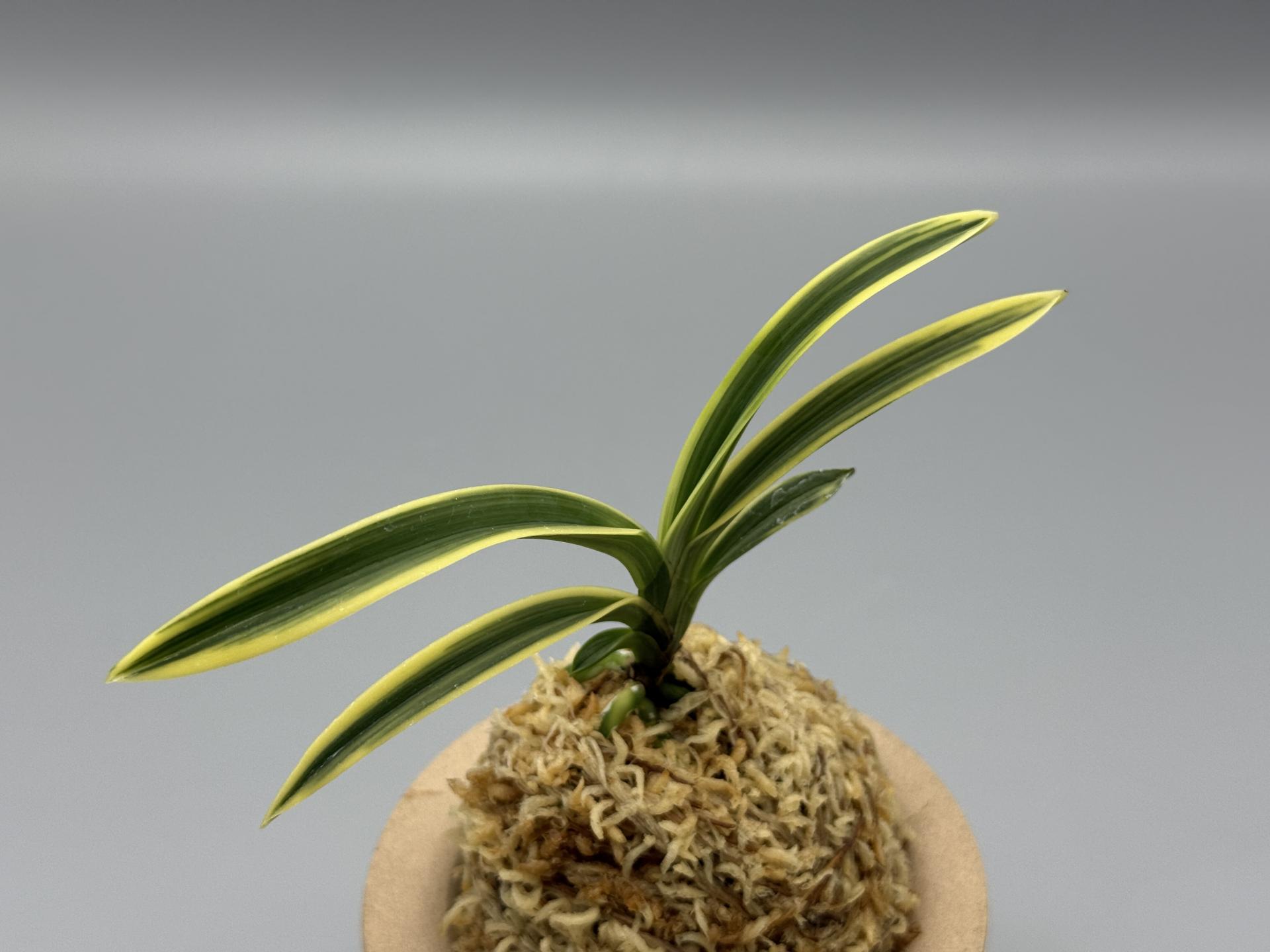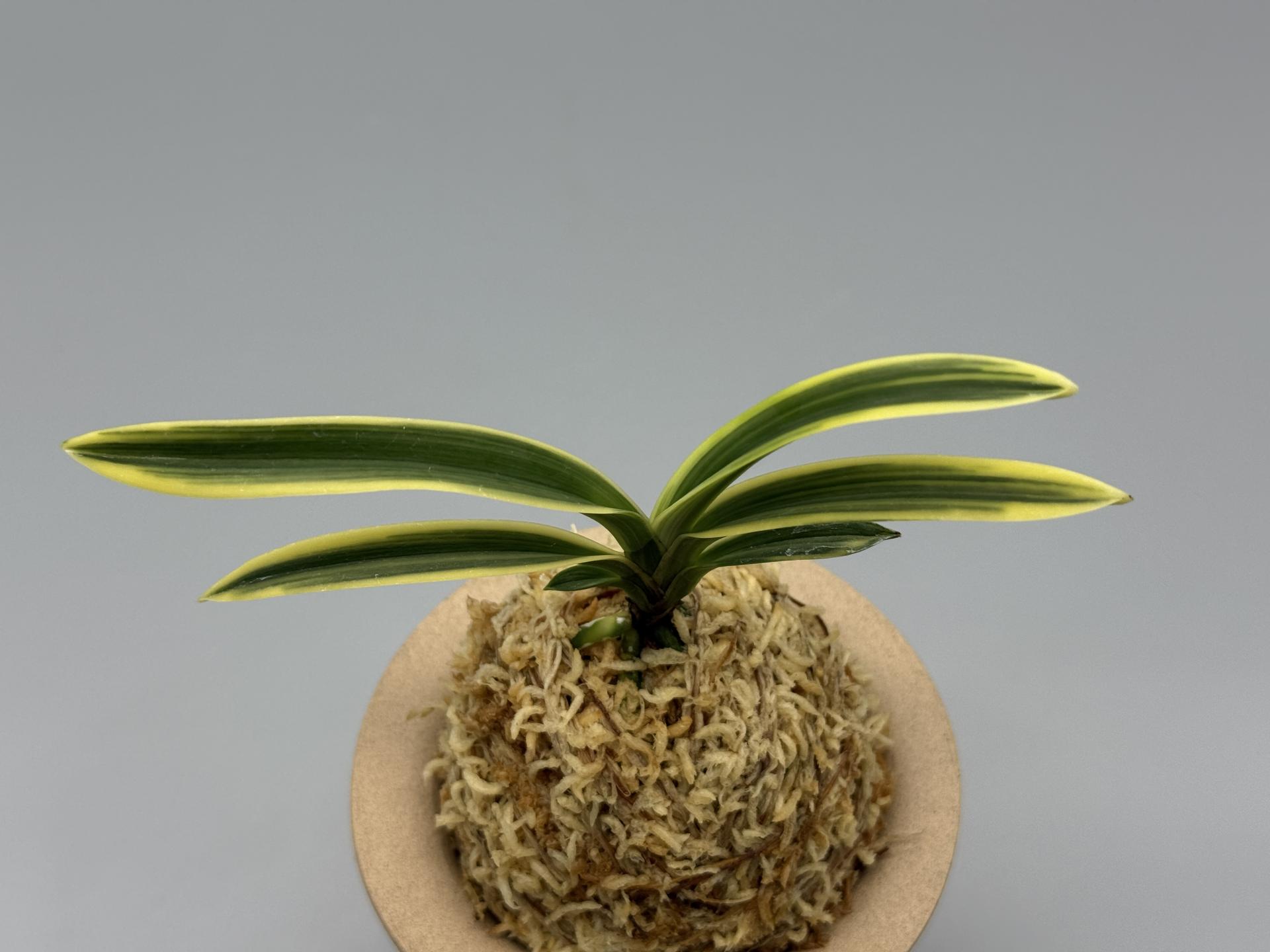 韓國의 아마미계 실생에서 선별된, 호(縞) 개체의 싹(芽) 변화(2004년)로, 백복륜(白覆輪) 품종이다. 예(藝)는 처음부터 백색(白色)을 폭넓게 두르고, 중앙으로는 산반성(散斑性) 녹(綠)이 넓게 흐르는 백 대복륜(白 大覆輪)이다. 특히 압도적인 볼륨으로, 멀리서 봐도 임팩트가 절대적이지만, 이 품종의 대단한 점은, 날카롭게 빛나는 완성도 높은 고품격(高品格)의 조화로운 백복륜이라 할 수 있다. 매혹적인 나뭇잎 모양(木葉型)에 녹과 무늬의 대비 또한 일품으로, 최상의 이상적인 풍격(風格)을 느끼게 한다. 2013년도 대한민국 풍란연합회 신 등록 품이며, 2018년도 일본 부귀란회 신 등록 품이기도 하다. 약간 분홍색을 띤 귀여운 꽃으로, 볼륨에 비해 보통보다 좀 작은 꽃을 피운다. 2013년도 대한민국 풍란연합회 신 등록 품이며, 2018년도 일본 부귀란회 신 등록 품이기도 하다. 잎은 목엽형(木葉型)으로, 끝이 둥글고, 폭도 상당히 넓은 광엽의 희엽으로, 볼륨 만점이다. |