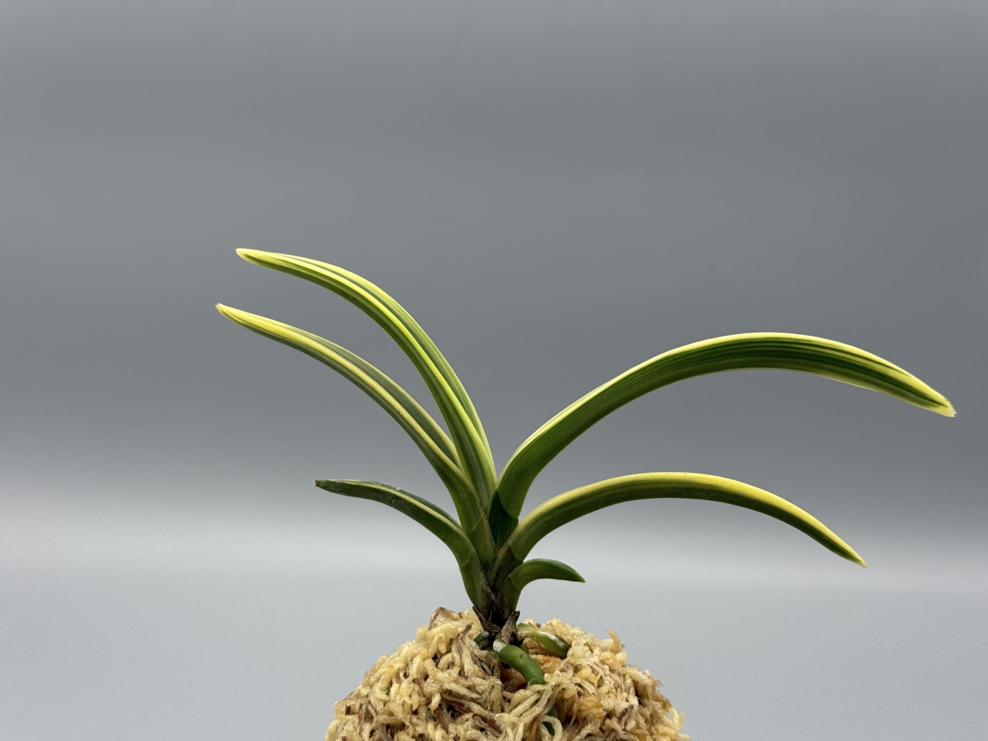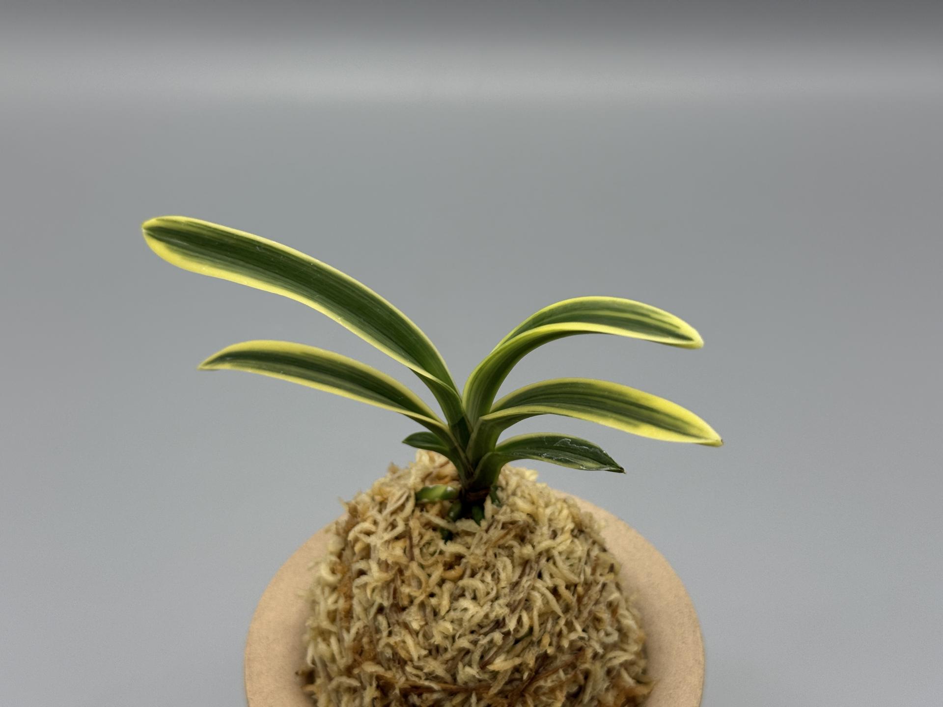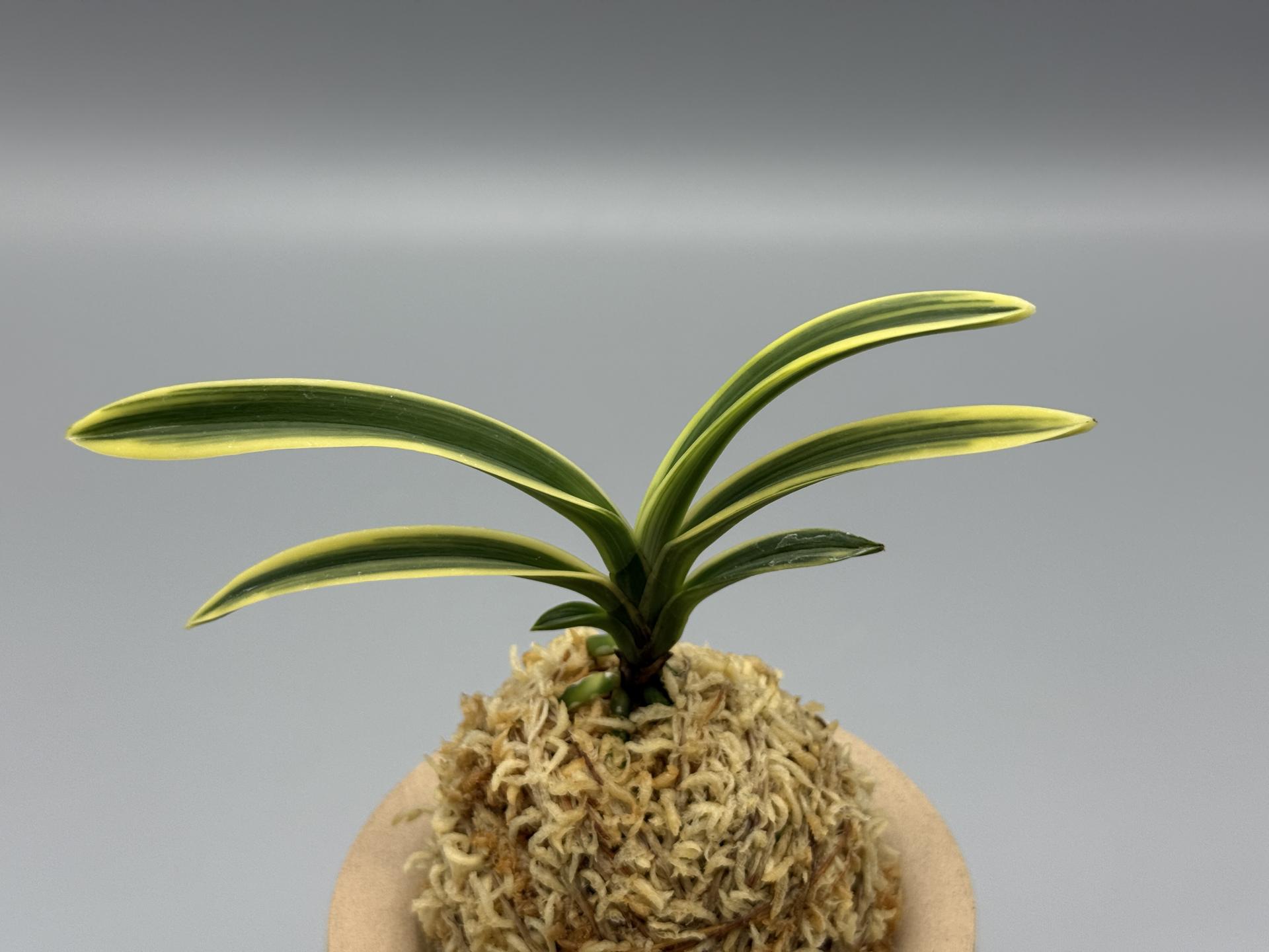 韓國의 아마미계 실생에서 선별된, 호(縞) 개체의 싹(芽) 변화(2004년)로, 백복륜(白覆輪) 품종이다. 예(藝)는 처음부터 백색(白色)을 폭넓게 두르고, 중앙으로는 산반성(散斑性) 녹(綠)이 넓게 흐르는 백 대복륜(白 大覆輪)이다. 특히 압도적인 볼륨으로, 멀리서 봐도 임팩트가 절대적이지만, 이 품종의 대단한 점은, 날카롭게 빛나는 완성도 높은 고품격(高品格)의 조화로운 백복륜이라 할 수 있다. 매혹적인 나뭇잎 모양(木葉型)에 녹과 무늬의 대비 또한 일품으로, 최상의 이상적인 풍격(風格)을 느끼게 한다. 2013년도 대한민국 풍란연합회 신 등록 품이며, 2018년도 일본 부귀란회 신 등록 품이기도 하다. 약간 분홍색을 띤 귀여운 꽃으로, 볼륨에 비해 보통보다 좀 작은 꽃을 피운다. 2013년도 대한민국 풍란연합회 신 등록 품이며, 2018년도 일본 부귀란회 신 등록 품이기도 하다. 잎은 목엽형(木葉型)으로, 끝이 둥글고, 폭도 상당히 넓은 광엽의 희엽으로, 볼륨 만점이다. |