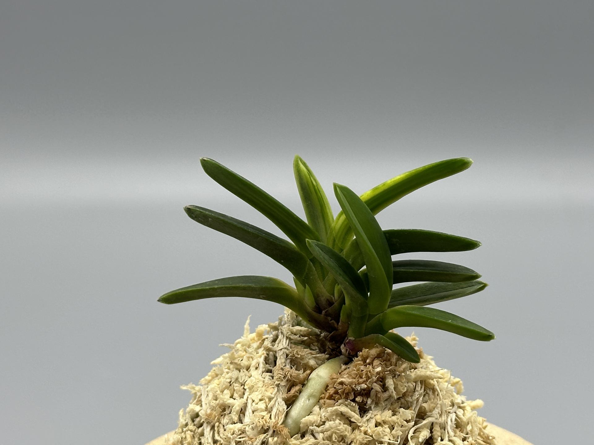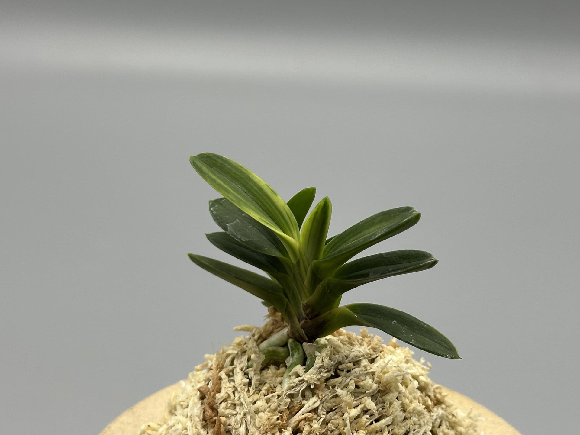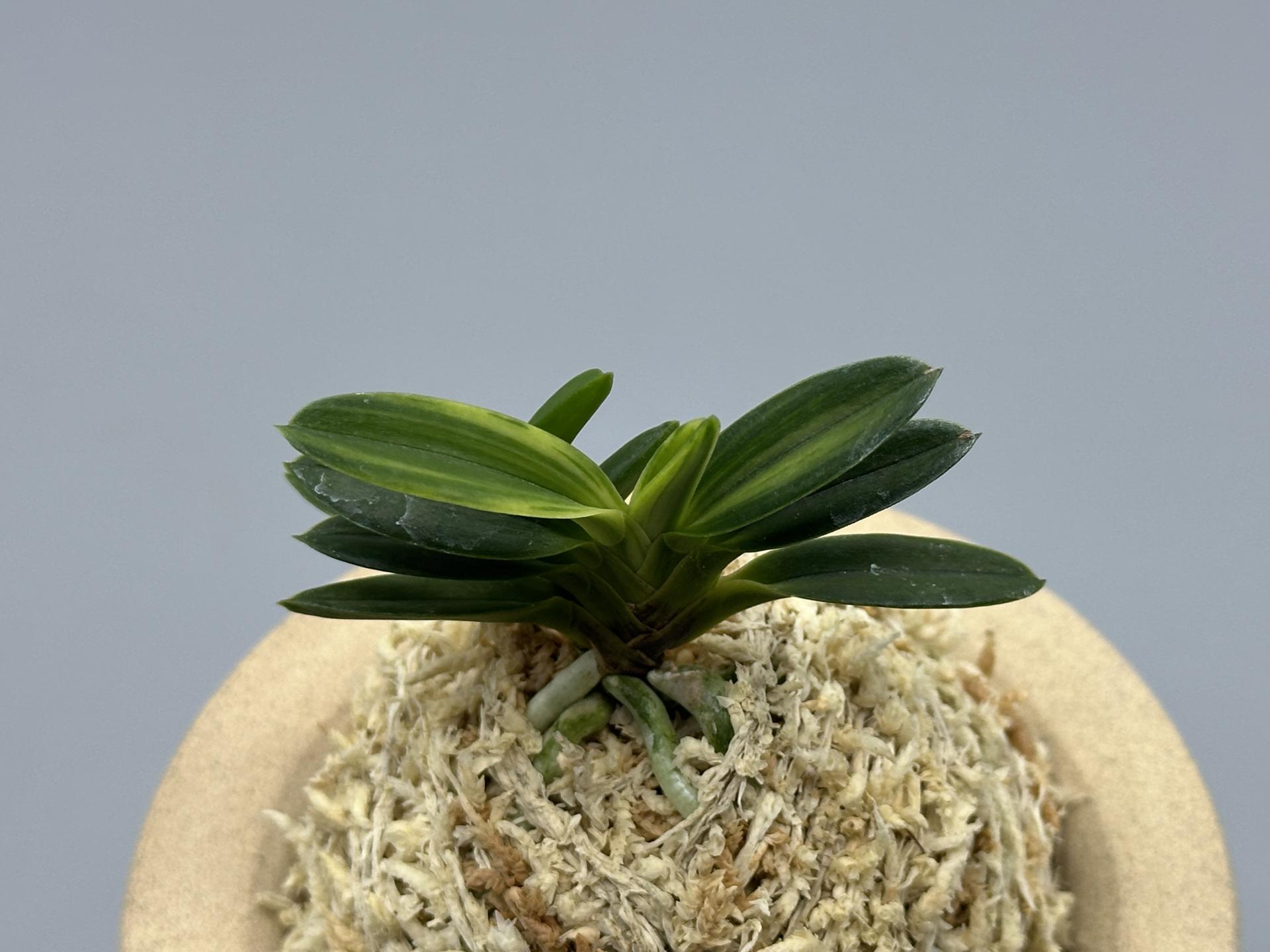 [천지천(天之川)]의 실생에서 변이된, 두엽의 반호계(斑縞系) 개체다. 그야말로 돌연변이로, 외견상으로도 모종(母種)인 [천지천]과 전혀 다르며, 예로도 어디 하나 모종의 예가 나타나지 않는, 완전히 새롭게 태어난 신품종이다. 예는 두엽으로 변신하면서 백(白)의 산반성(散斑性) 호(縞), 즉 반호계(斑縞系=일반적인 縞에 산반성 호가 더해진 것)가 나타나서 후암되고, 투성(透星)의 호반(虎斑)은 없어졌으며, 뿌리 또한 색이 좀 더 선명한 루비 근으로 나온다. 이름은 하늘의 다리와 땅의 지기를 소통하라는 의미로, 명명했다 한다. 축은 니축에 붙음매는 월형이다. -자료제공:김원태- |