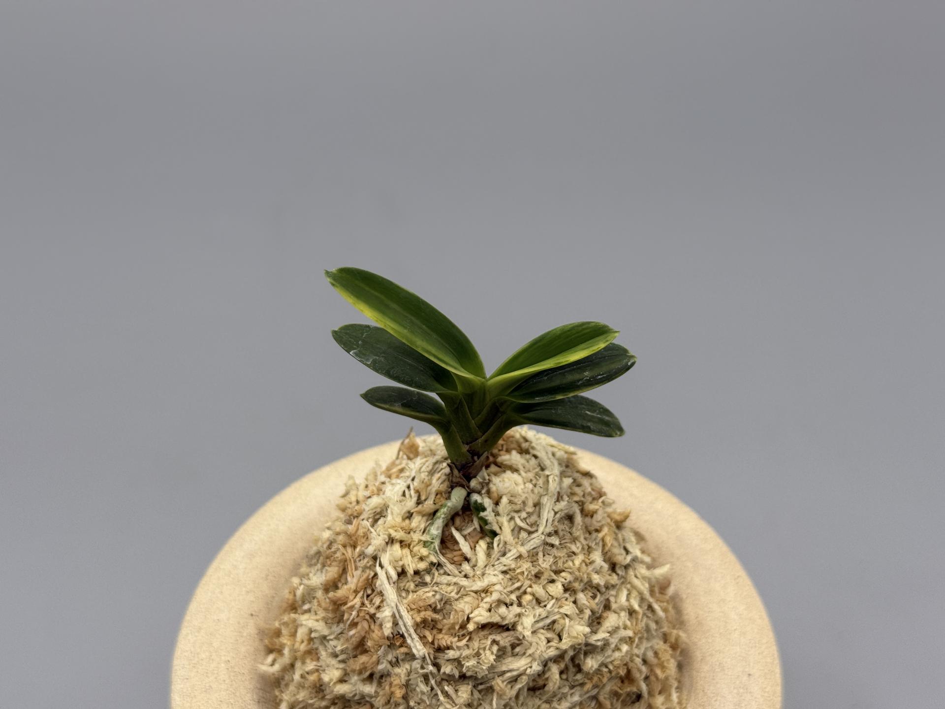 소형의 두엽, [화천(華泉)]의 黃縞 품종이다. 모종(母種)의 양부모(華泉, 富嶽)로부터 그 특징을 잘 계승한, 엽예(葉芸)의 두엽에 반예(斑芸)의 현란한 산반이 아름답다. 예의 연속성이 뛰어난 품종으로 알려져 있으며, 무늬의 퀄리티(quality)가 매우 높아, 화려한 것에서부터 감(紺)이 중통하는 대복륜으로 발전도 진행하는 것 같아 기대가 높다. 품종 초기에는 그냥 '화천의 호'로 통용되었으나, 지금은 [화천금(華泉錦)]으로 정식 명명이다. 잎은 모종처럼, 조금 입엽풍으로, 올망졸망한 모습이 귀엽고 예쁘다. 니축에 니근으로, 붙음매는 월형이다. |
