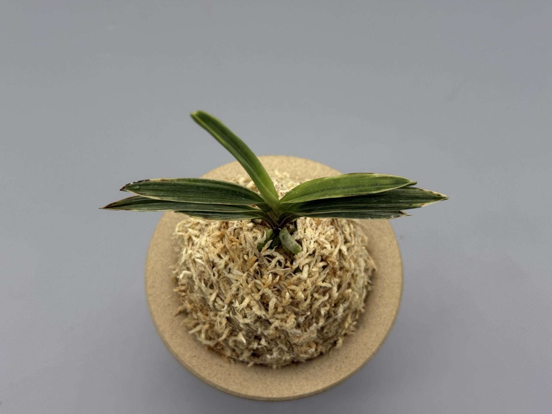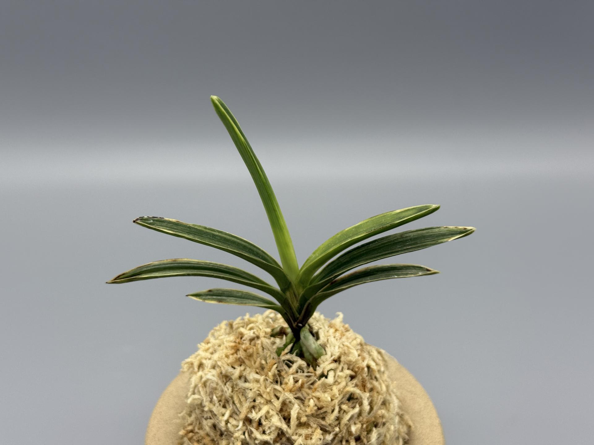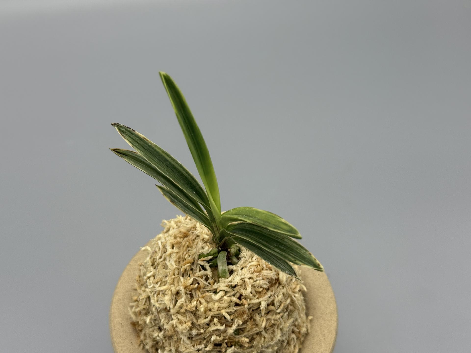 [고외]와 [기주설호]의 교배 실생에서 태어난 복예 품종이다. 지금까지 없었던 새로운 예로, 출아(出芽)는 백(白)의 서반성(曙斑性) 牡丹藝로 나온 후, 잎 끝으로부터 복륜의 갓을 쓰면서, 녹을 점점 넓혀 복륜과 호(縞)가 공존한다. 잎 전면으로는 녹색의 총산반성 잔호(細縞)를 잔잔하게 흘리며, 가장자리로 백색(白色)의 사복륜(絲覆輪)이 잔물결 치듯 흐르고, 견상선(堅狀線)도 함께 걸치는 호복륜호(虎覆輪縞)의 독특한 '多芸妙芸' 품종이다. 은은한 뭉게구름의 호반(虎斑)과 잔잔하게 흐르는 물결파의 복륜이 잘 어우러져, 깊은 맛이 깃 뜬 일품이다. 이름은 정란사의 '김진재'씨가 깨달음을 목적으로 같은 도를 수행하는 벗을 뜻하는, 일종의 동반자라는 뜻에서 명명했다. 2012년도 한국풍란연회 신 등록 품이다. |