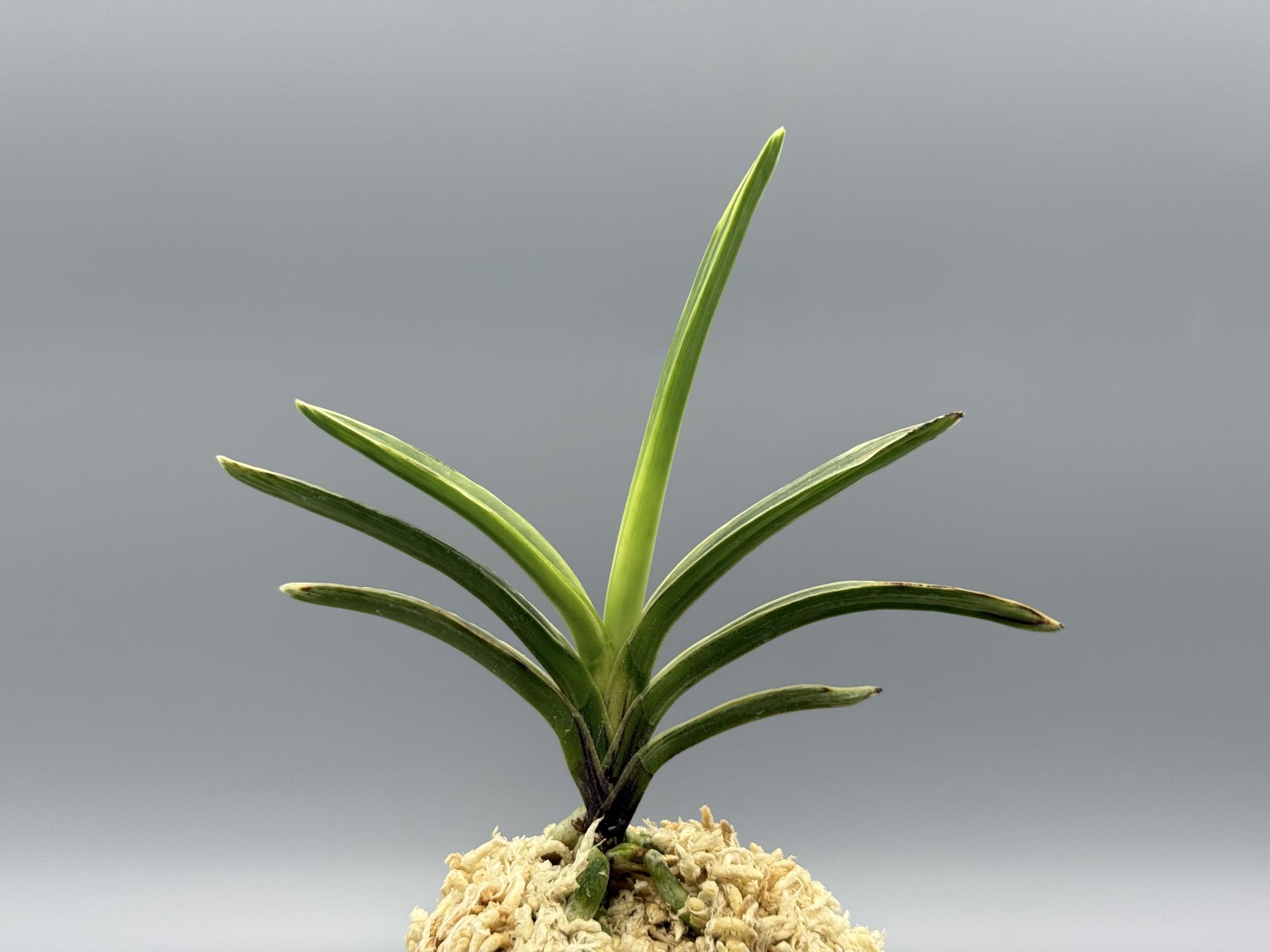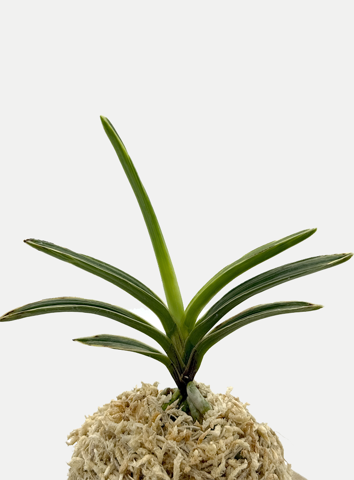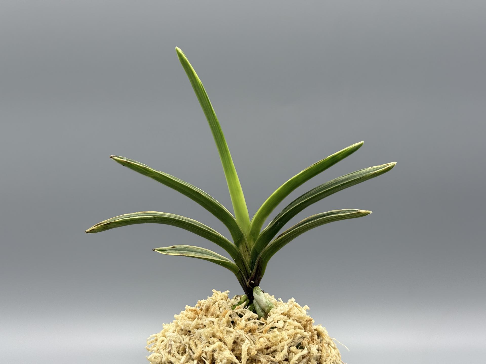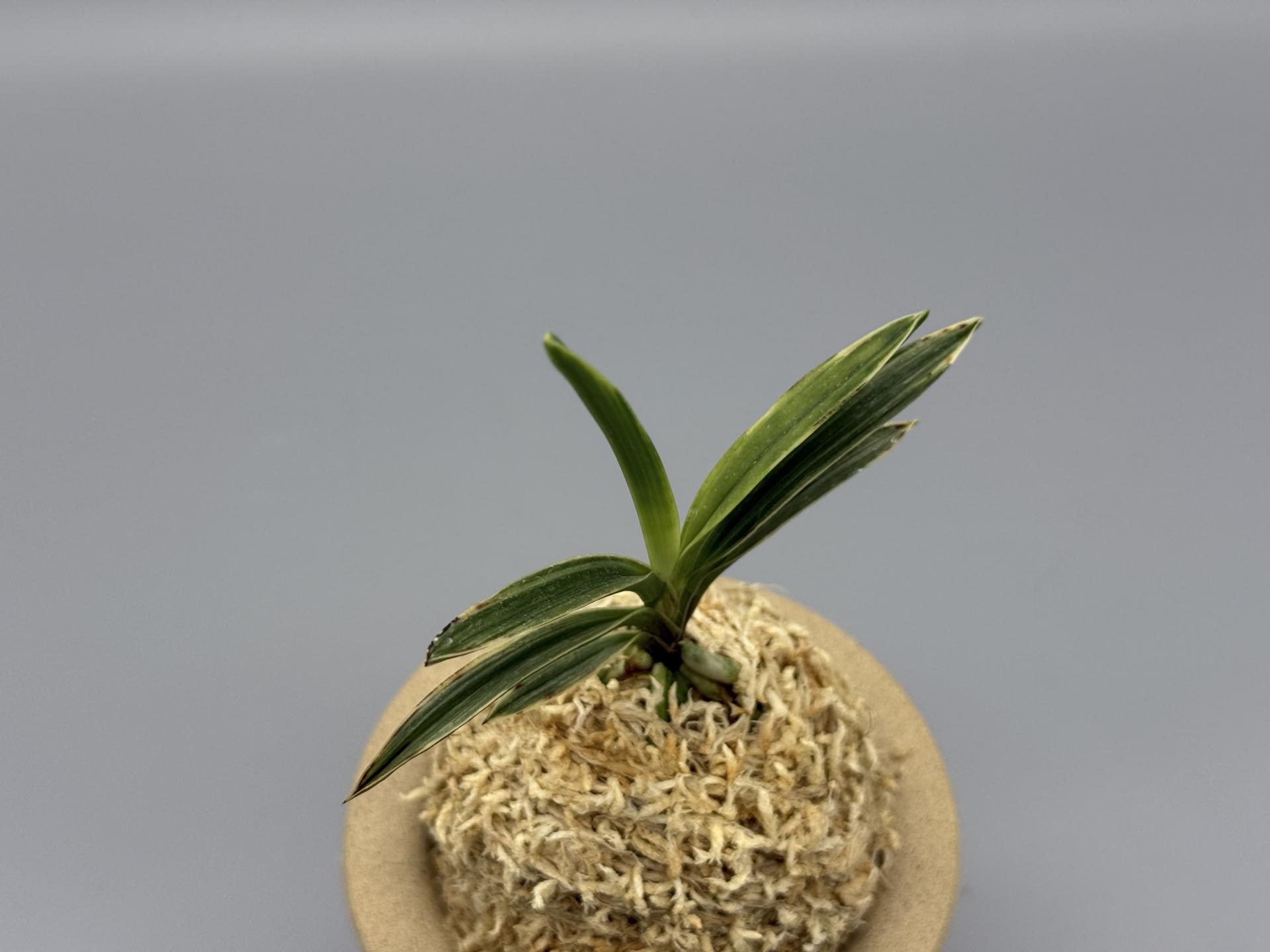 [고외]와 [기주설호]의 교배 실생에서 태어난 복예 품종이다. 지금까지 없었던 새로운 예로, 출아(出芽)는 백(白)의 서반성(曙斑性) 牡丹藝로 나온 후, 잎 끝으로부터 복륜의 갓을 쓰면서, 녹을 점점 넓혀 복륜과 호(縞)가 공존한다. 잎 전면으로는 녹색의 총산반성 잔호(細縞)를 잔잔하게 흘리며, 가장자리로 백색(白色)의 사복륜(絲覆輪)이 잔물결 치듯 흐르고, 견상선(堅狀線)도 함께 걸치는 호복륜호(虎覆輪縞)의 독특한 '多芸妙芸' 품종이다. 은은한 뭉게구름의 호반(虎斑)과 잔잔하게 흐르는 물결파의 복륜이 잘 어우러져, 깊은 맛이 깃 뜬 일품이다. 이름은 정란사의 '김진재'씨가 깨달음을 목적으로 같은 도를 수행하는 벗을 뜻하는, 일종의 동반자라는 뜻에서 명명했다. 2012년도 한국풍란연회 신 등록 품이다. |