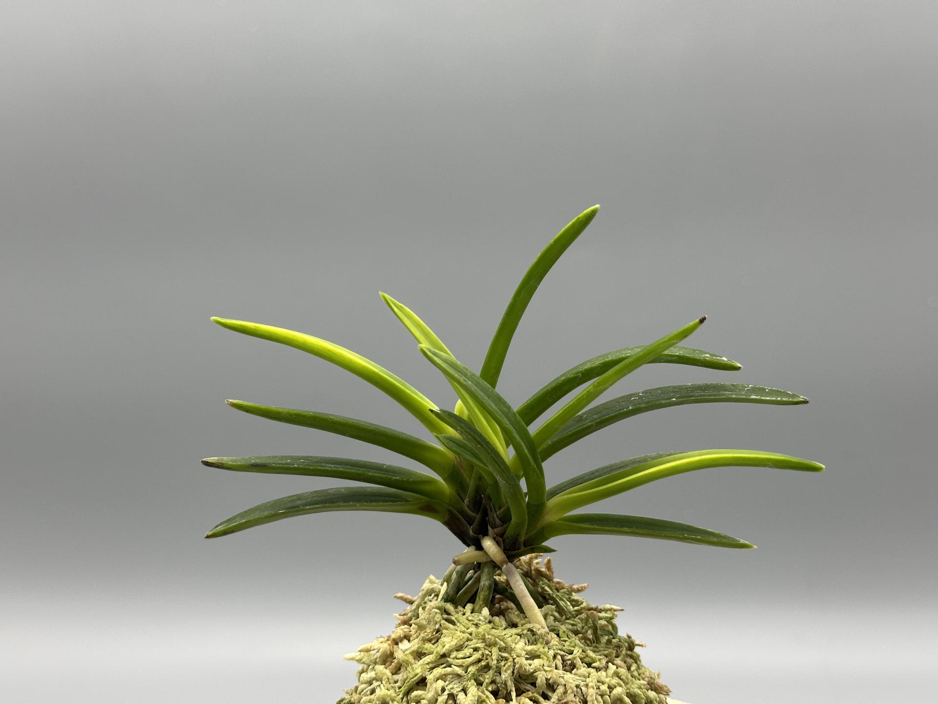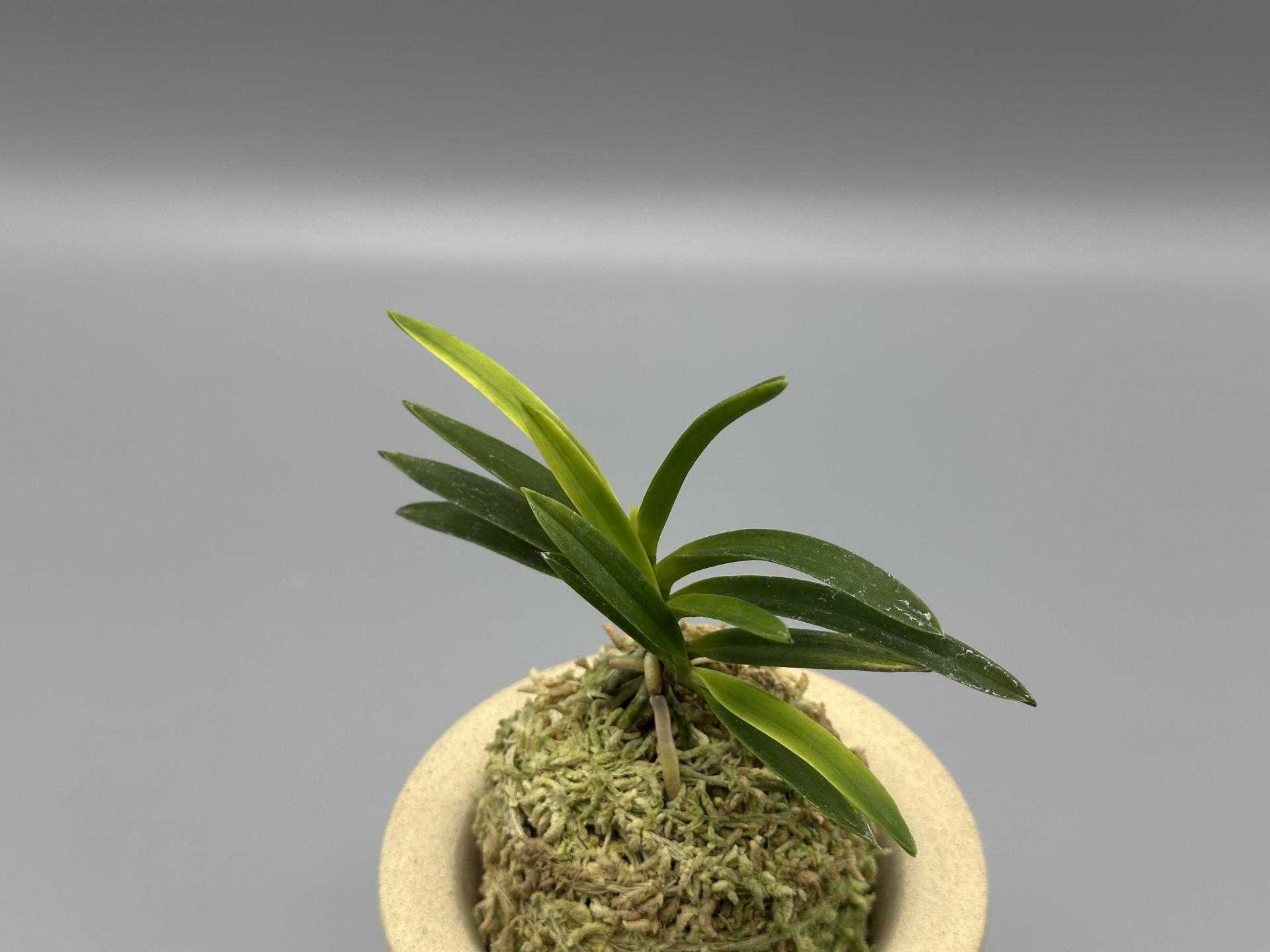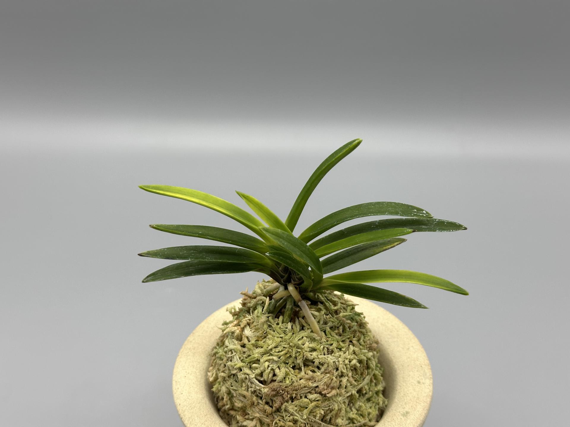 감성(紺性)이 좋은 소형 종으로, 새로 나오는 잎은 백황색(白黃色)의 유령(幽靈)으로 자라고, 바로 잎 끝으로부터 녹색이 차오르며, 천엽에서 2장 째부터는 무지 엽으로 된다. 다른 식물(춘란)에서는 서반(曙斑)에 해당하는 예다. 옛날부터 지금까지 인기가 높은 품종으로, 그 인기는, 루비 근이라 부르는 선명한 적자색(赤紫色)의 아름다움에 있다. 햇볕이 강하면 소두반(小豆斑)이 많아 보기가 나쁘다. 뿌리 뻗음이 나쁨으로 약광(弱光)의 재배가 바람직하다. 두꺼운 직도형(直刀型)의 잎으로, 잎 뒤에 묵(墨)이 흐른다. 새로운 잎은 유령으로 자라지만, 감선(紺線)을 동반할 때도 있다. 잎이 조금 길고 묵(墨)이 별로 나오지 않는 계통도 있는데, 이쪽이 튼튼하고 신아 붙이기도 좋으며, 대형으로 되어 인기가 높다. 1892년 아이치현(愛知縣)의 카토(加藤芳松)씨 난실의 [흑모단(黑牡丹)]에서 변화된 것이다. 짙은 니축에 루비 근으로, 붙음매는 월형이다. |
