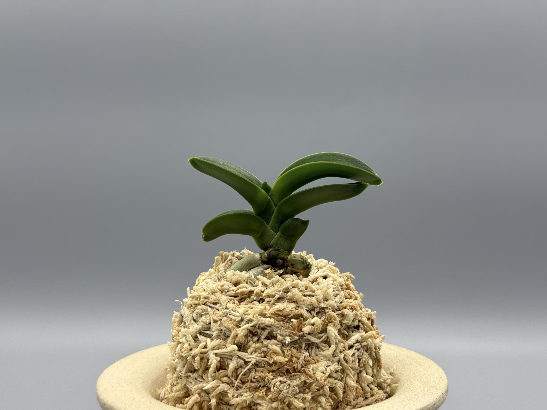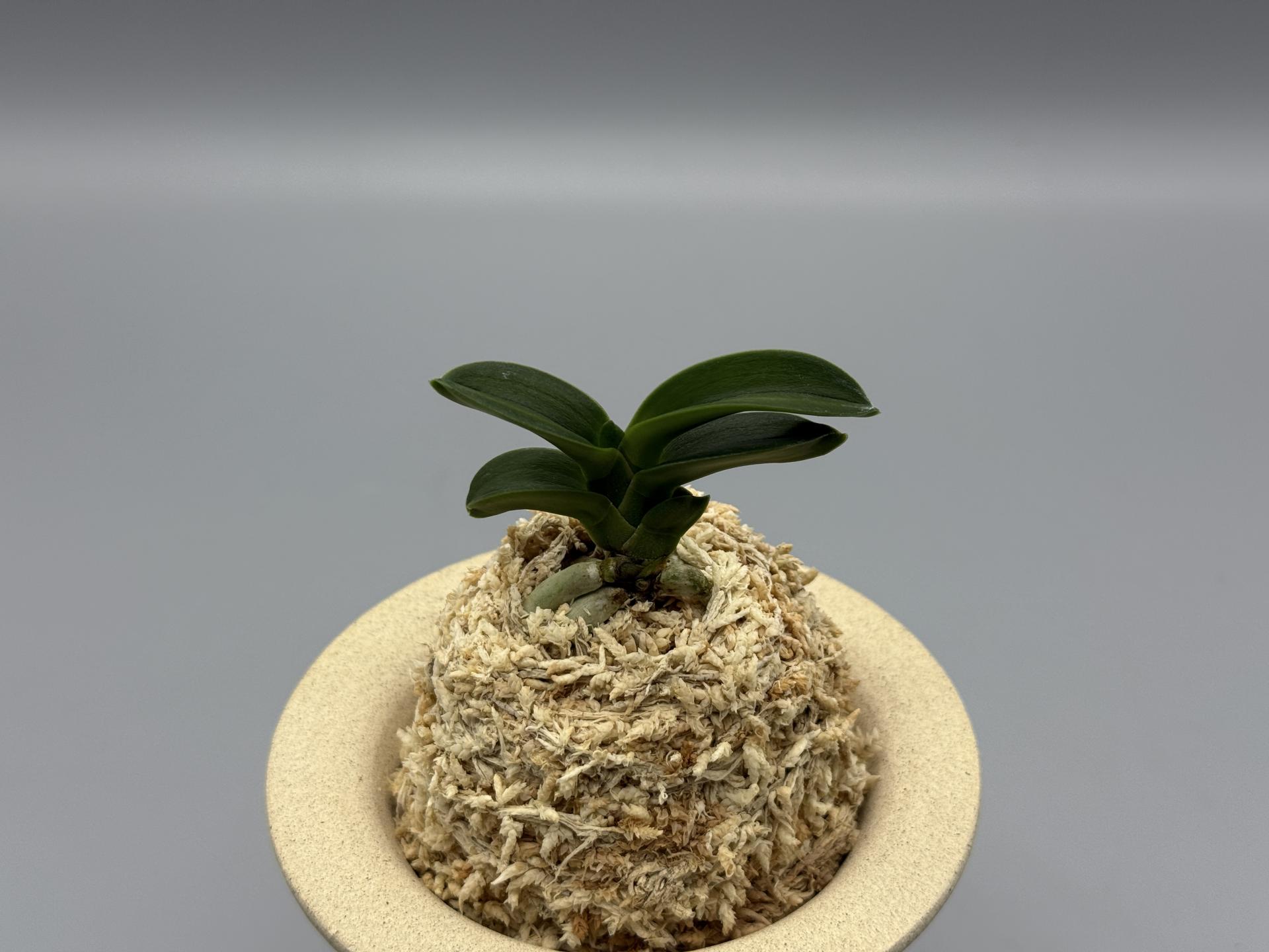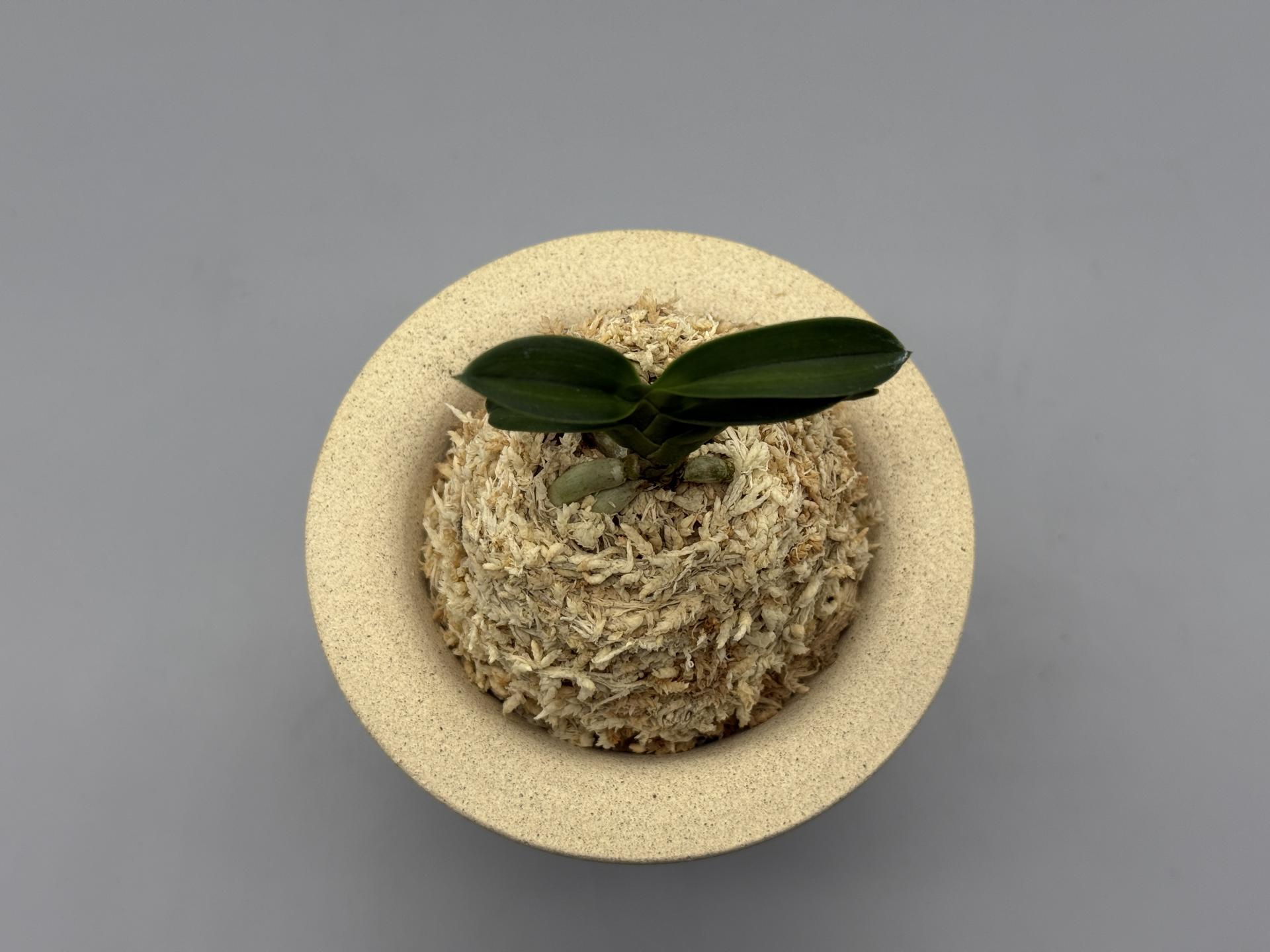 2007년경 '문향원'의 아마미계 풍란 실생에서 나온 두엽의 녹화(綠花)로, 다예(多芸) 품이다. 감성(紺性) 강한 '취선(翠扇)' 형태의 두엽으로, 꽃잎을 푸르게 물들이는 녹화의 매변화(梅弁花)다. 특히 설(舌)이 3개로, 녹색을 띤 중심설(主舌)과 좌우로, 거의 같은 모양의 흰 2개의 부설(副舌)로 이루어진, 다설화(多舌花)의 원판화(圓瓣花)다. 그러나, 거(距)는 주설에서만 굵게 나오는, 깨끗하고 순수한 녹화로 피는 명화다. '화일륜(花日輪)'의 꽃과 유사하나, 한 수준 높은 새로운 스타일로, 녹과 설백(雪白)의 색감이 조화롭게 어우러진, 무척 소심(素心)적인 아름다운 꽃이다. 이 품종은 4배체로 씨앗이 맺히지 않아 실생이 불가능하며, 성장과 번식도 더딘 편이다. 잎은 두꺼운 입엽으로, 축은 굵고, 입 겹침이 단정한 볼륨 있는 모습이다. 니축에 니근으로, 붙음매는 느슨한 일자형이다. |