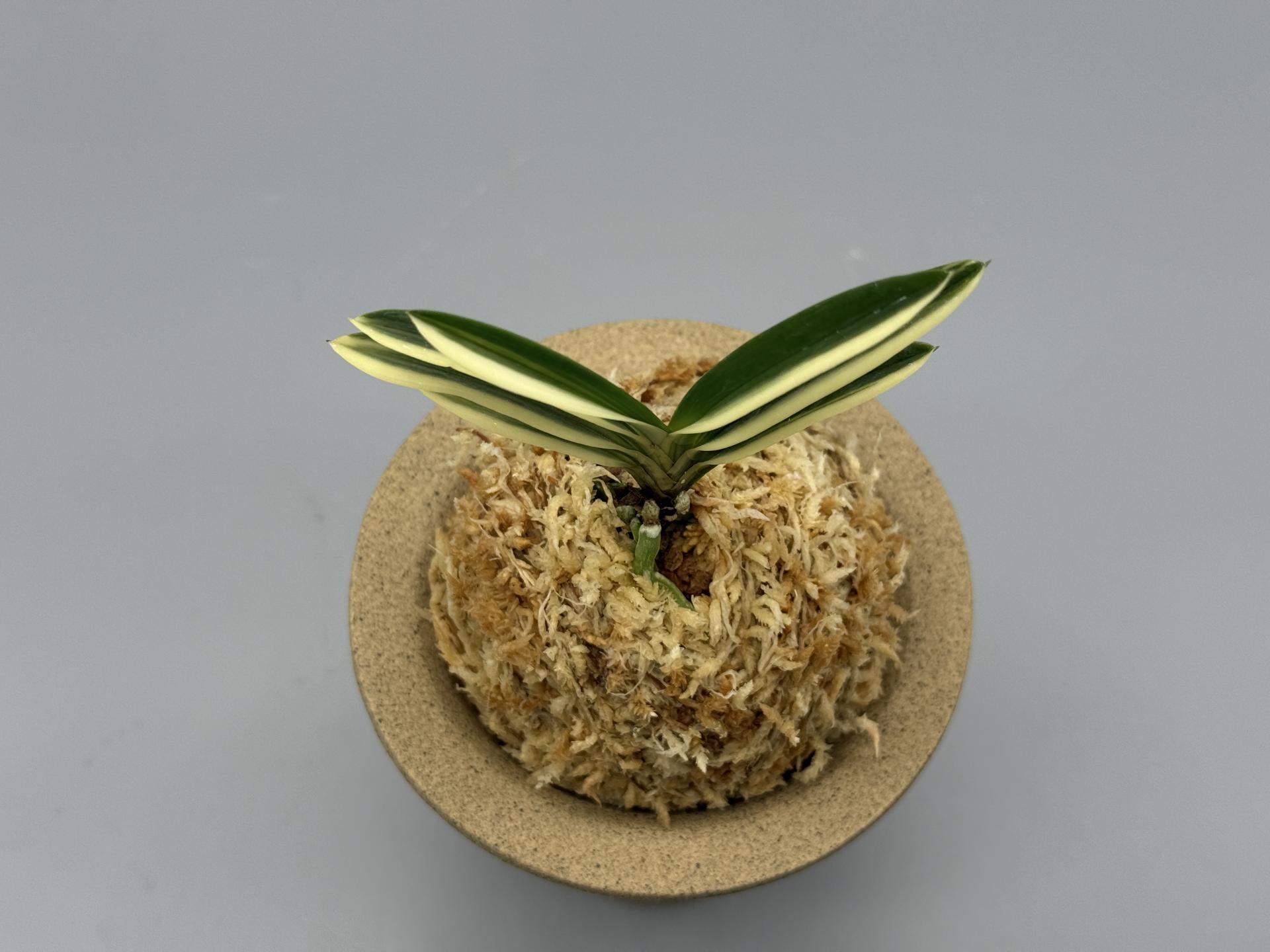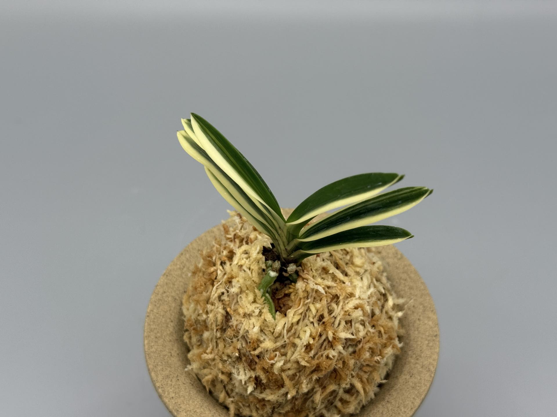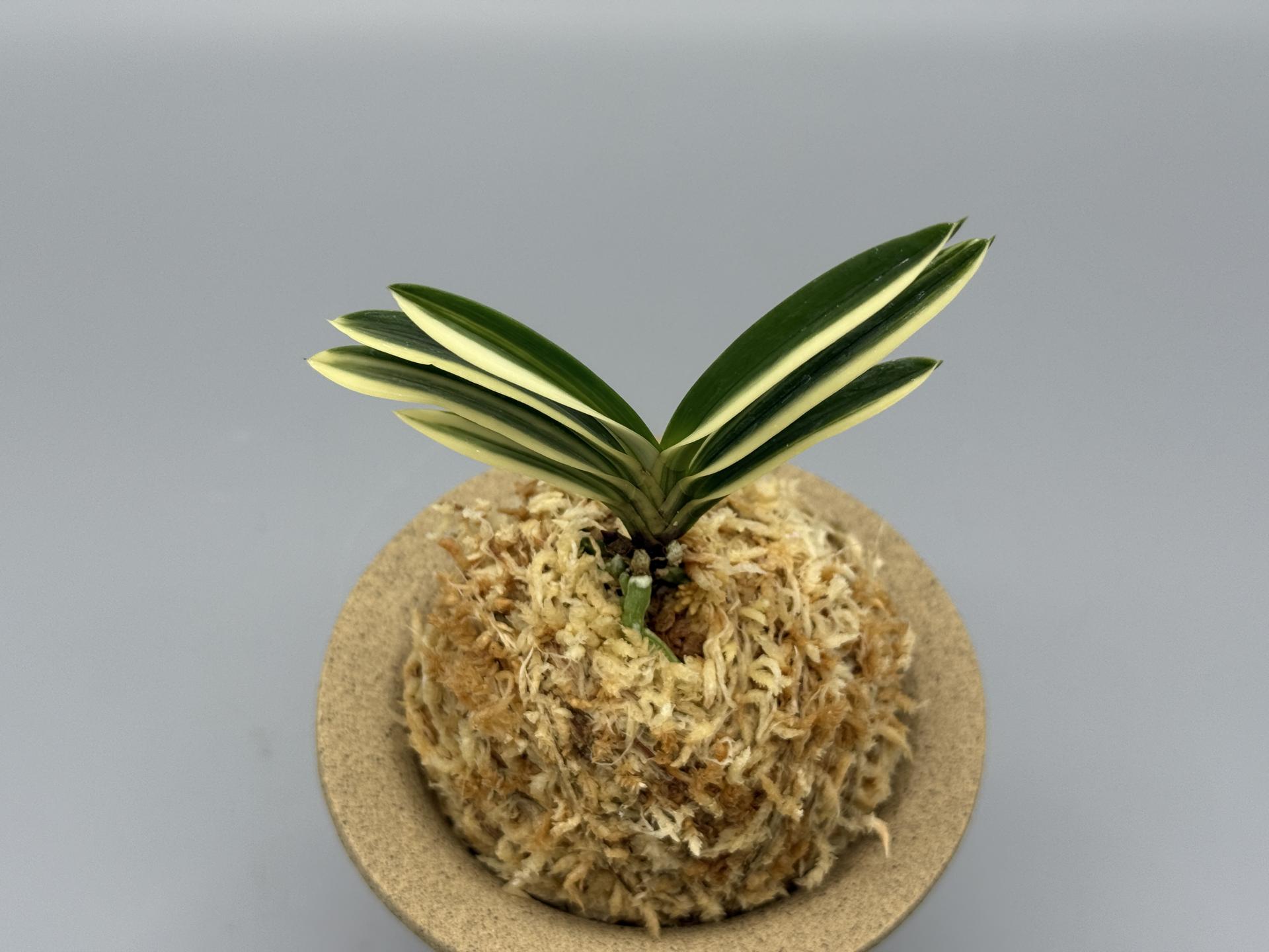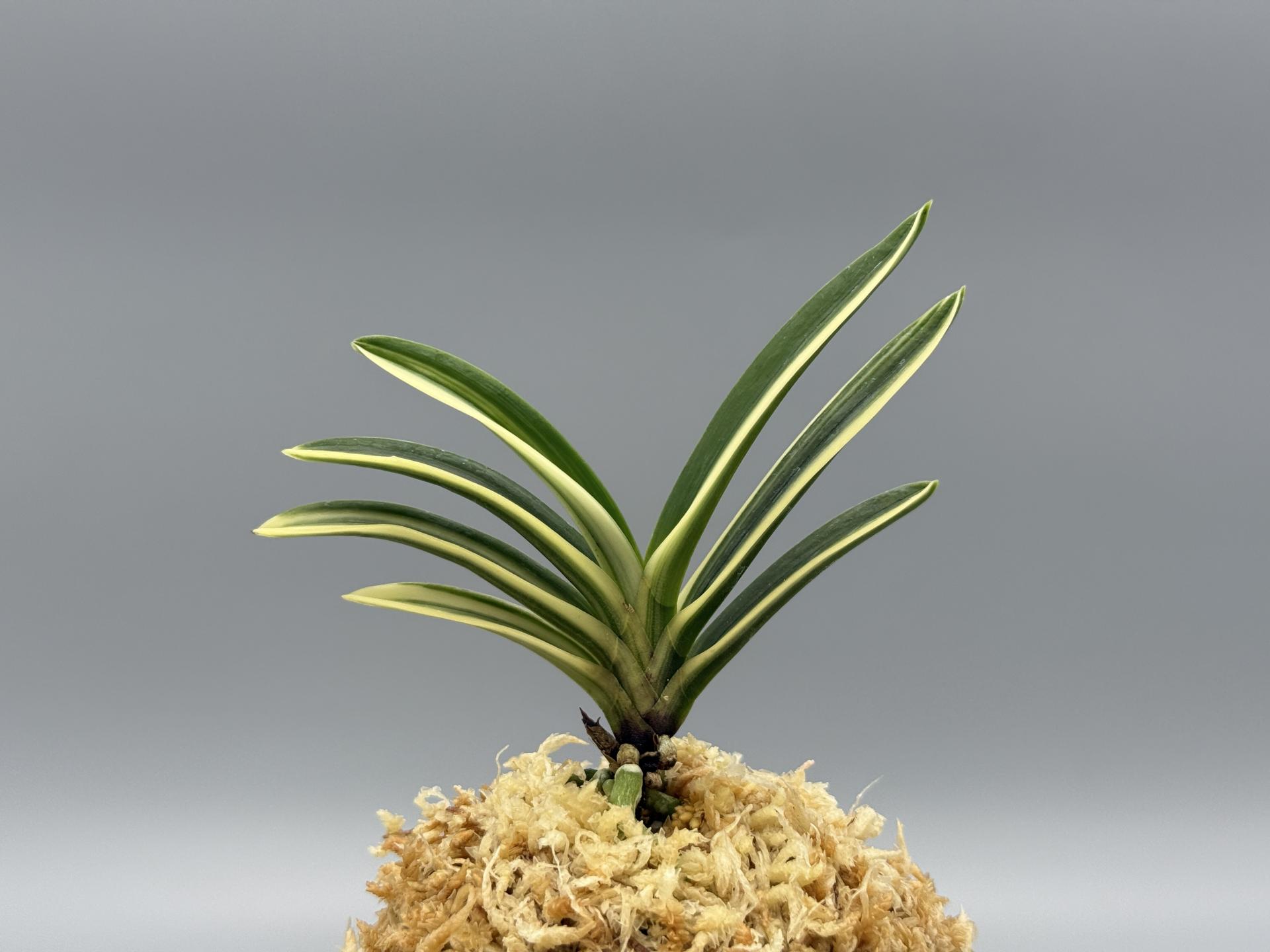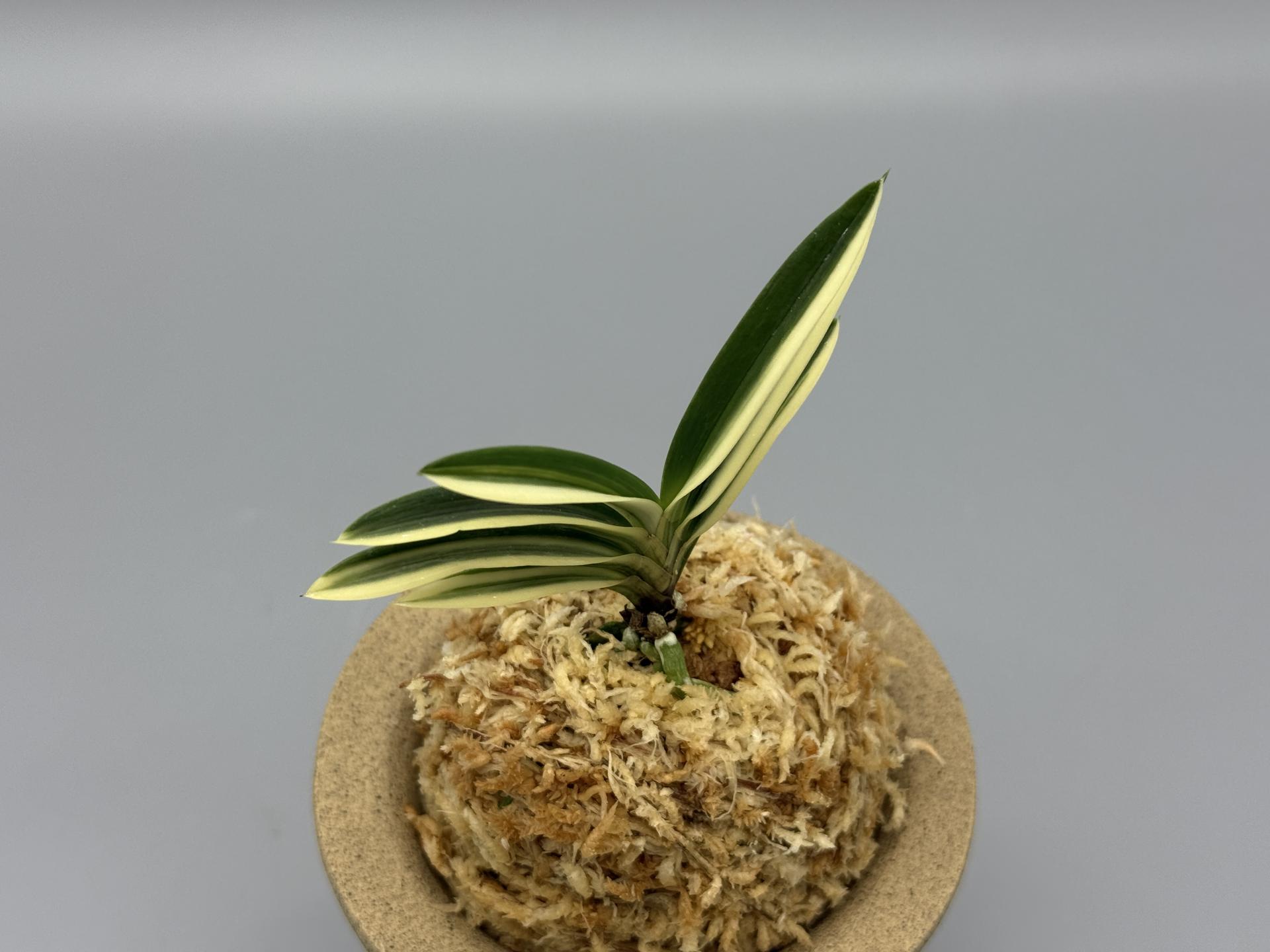 적화(赤花)의 '주천왕' 실생(2009년경 태을의 박원교 씨)에서 나온, 화예(花芸)와 반예(斑芸)의 백호(白縞)로, 이예(二芸) 품이다. '주천왕'은 일찍부터 실생이 활발하게 이루어져 무늬가 들어간 개체도 많이 작출되었다. 그중 '홍화전', '주천왕비', '주천왕복륜' 등이 있는데, 본종은 선명한 설백의 줄무늬(縞)다. 이 난은 눈(雪)처럼 새하얀 줄무늬로, 색상과 콘트라스트가 뛰어난 縞에 적화로, 소중한 존재라 할 수 있다. 무늬의 예(芸)는 선천성으로, 삼광반성(三光斑性) 순백호(純白縞)가 눈 시리게 아름답게 비친다. 백호가 물고(噛) 있는 축에서는 루비근이 나오며, 때로는 순백의 복륜 개체도 볼 수 있는 절품(絶品)이다. 잎은 모종과 같이 약간 입엽성(立葉性)으로, 단정한 모습이다. 니축에 니근으로, 붙음매는 일자의 얕은 월형이다. |