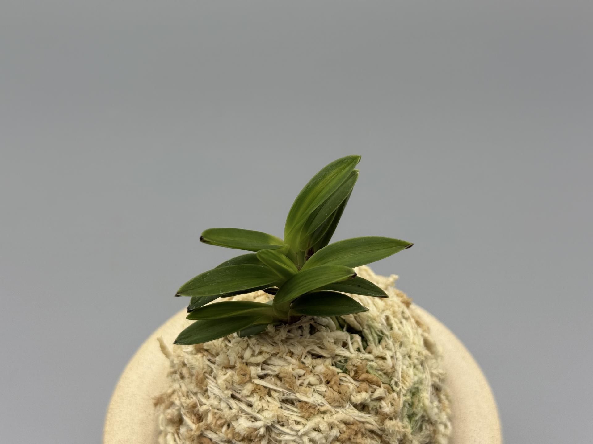 [천지천(天之川)]의 실생에서 변이된, 두엽의 반호계(斑縞系) 개체다. 그야말로 돌연변이로, 외견상으로도 모종(母種)인 [천지천]과 전혀 다르며, 예로도 어디 하나 모종의 예가 나타나지 않는, 완전히 새롭게 태어난 신품종이다. 예는 두엽으로 변신하면서 백(白)의 산반성(散斑性) 호(縞), 즉 반호계(斑縞系=일반적인 縞에 산반성 호가 더해진 것)가 나타나서 후암되고, 투성(透星)의 호반(虎斑)은 없어졌으며, 뿌리 또한 색이 좀 더 선명한 루비 근으로 나온다. 이름은 하늘의 다리와 땅의 지기를 소통하라는 의미로, 명명했다 한다. 축은 니축에 붙음매는 월형이다. -자료제공:김원태-