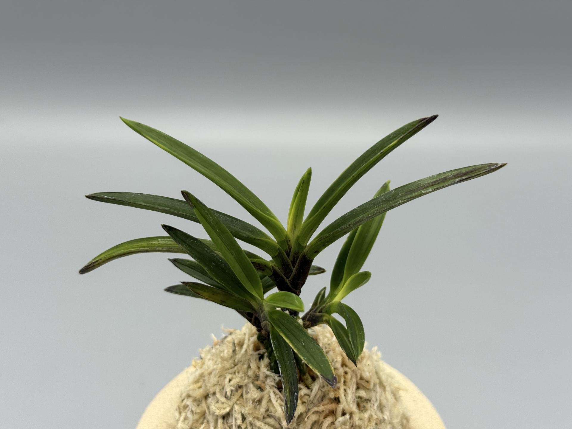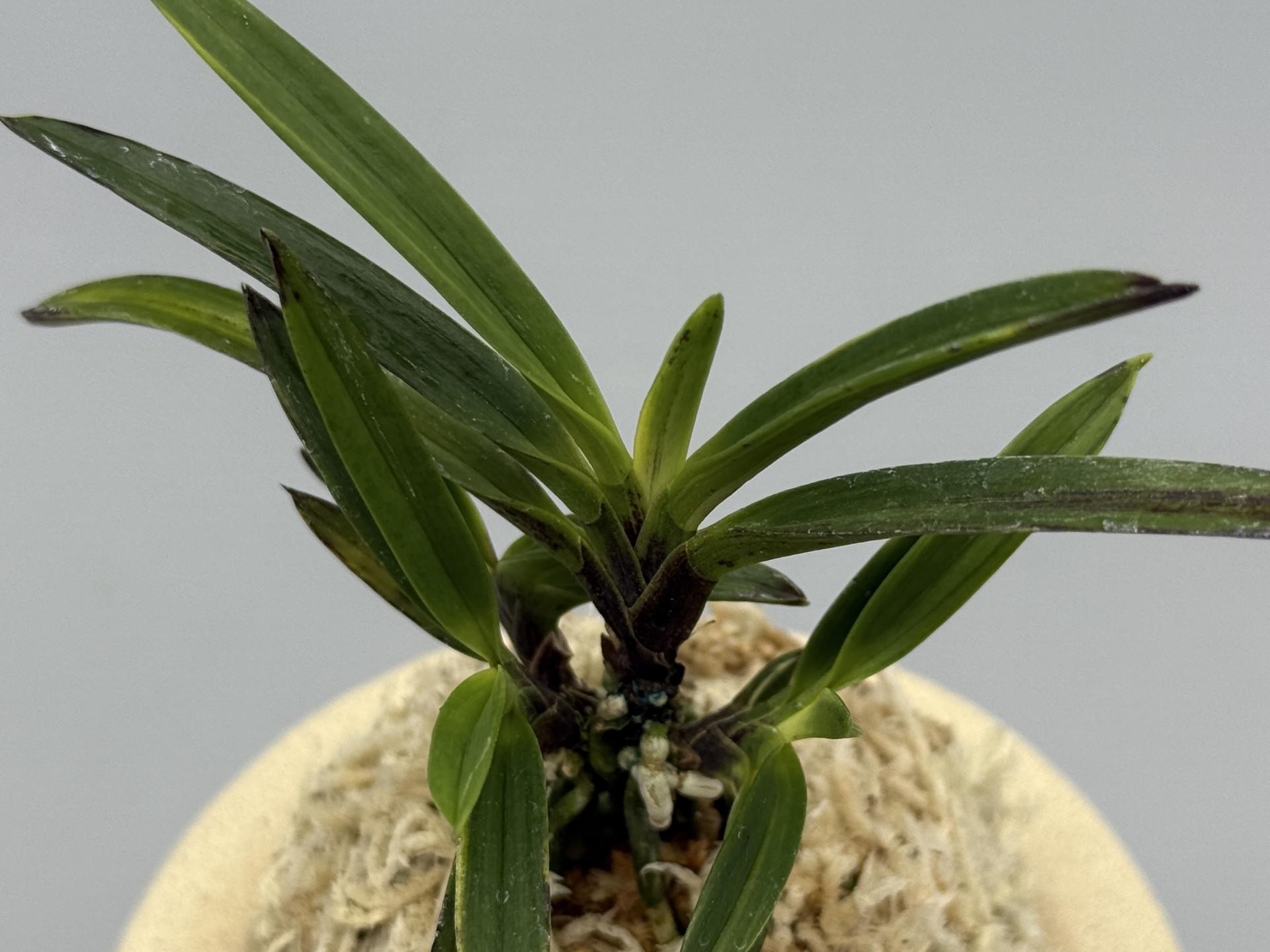 1890년대 '흑모단'에서 변화된 것으로 되어 있다. 출아(出芽)는 백황(白黃)색 유령(幽霊地)으로 자라며, 곧 잎끝에서 녹색이 올라와, 천엽에서 두 번째쯤에는 무지엽(靑)이 된다. 소위 말하는 서반(曙斑)에 해당하는 예(芸)로, 호반(虎斑)의 범주에 들어간다. 예로부터, 인기가 높은 품종으로, 그 인기는, 루비근이라고 부르는 선명한 적자색(赤紫色) 뿌리 끝의 아름다움에 있다고 할 수 있다. 햇볕이 강하면 소두반(小豆斑)이 많아져 보기 흉해진다. 뿌리가 잘 자라지 않으므로, 볕을 조금 약하게 기르고 싶다. 잎살이 두껍고 감성(紺性)이 좋은, 직도형(直刀型)으로 잎 뒷면에는 묵(墨)도 흘린다. 출아는 서반으로 자라는데, 감선(紺線)을 동반할 때도 있다. 이전에는 소형 종으로 소개된 적이 많았으나, 재배기술의 향상에 의해선지, 더욱 큰 계통이 늘어나, 근년에는 중 대형 종이 증가하였다. 잎이 약간 길고 묵이 잘 나오지 않는 계통도 있는데, 이쪽은 튼튼하고 신아(子)도 잘 나오는 대형으로 인기가 높다. 짙은 니축에 루비뿌리로, 붙음매는 월형이다.