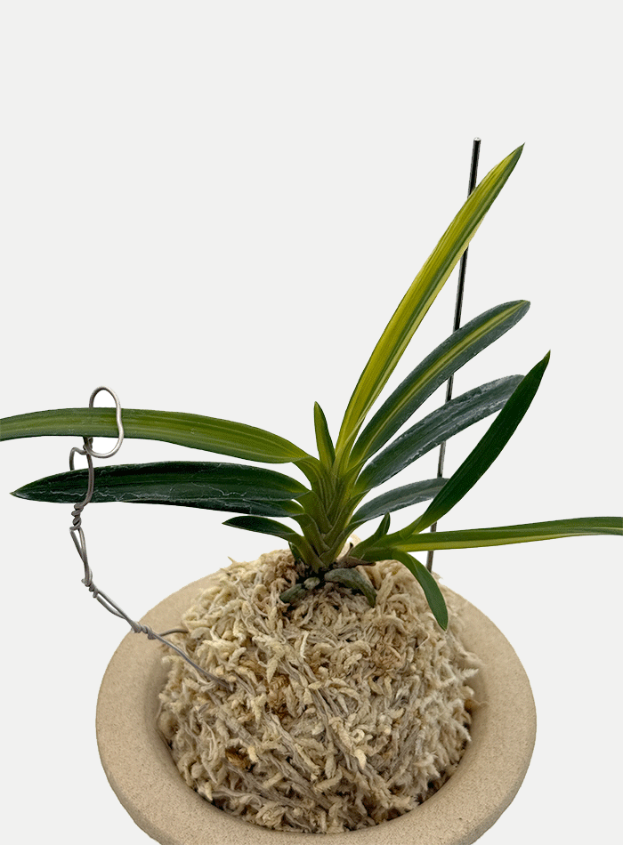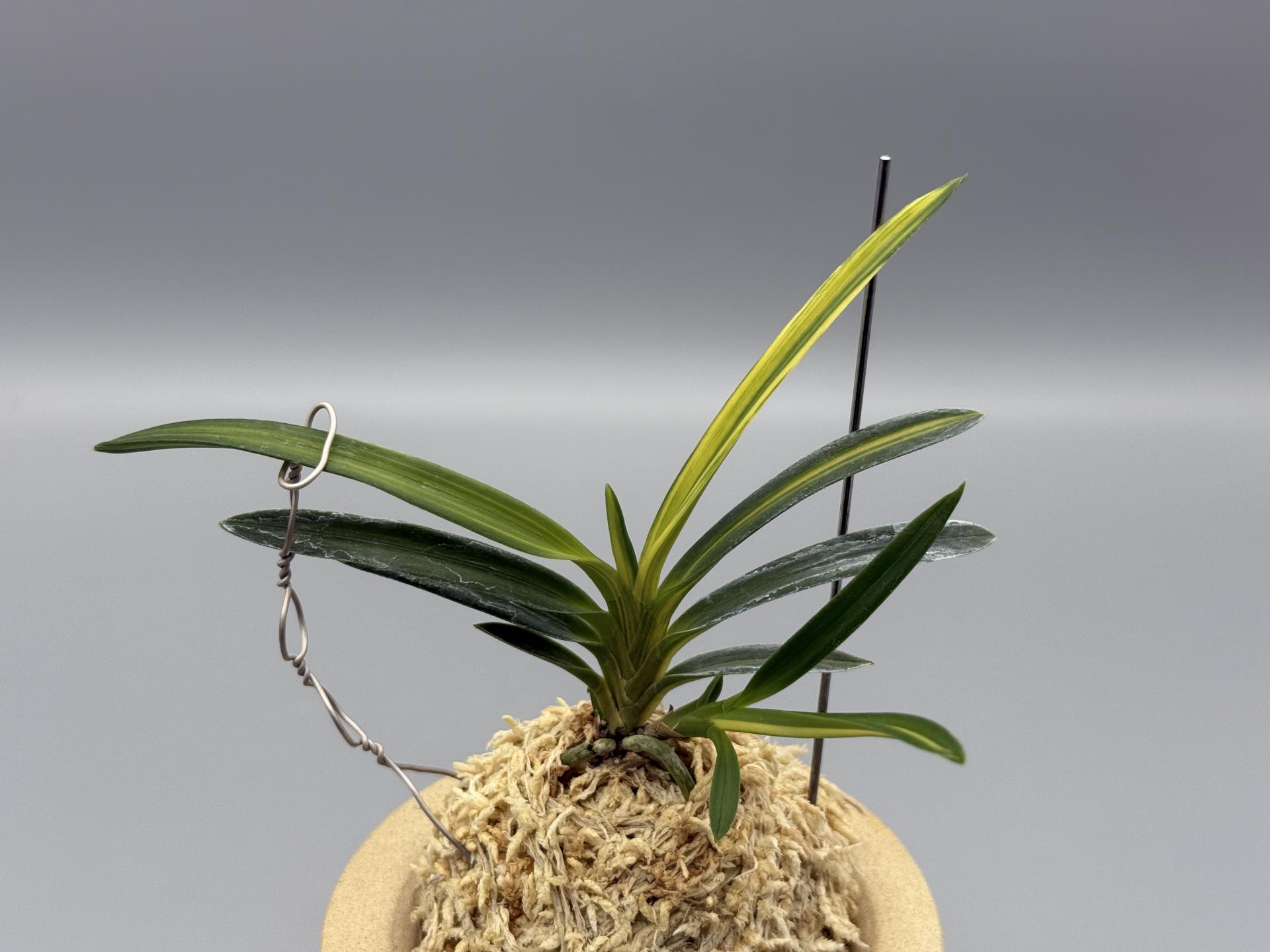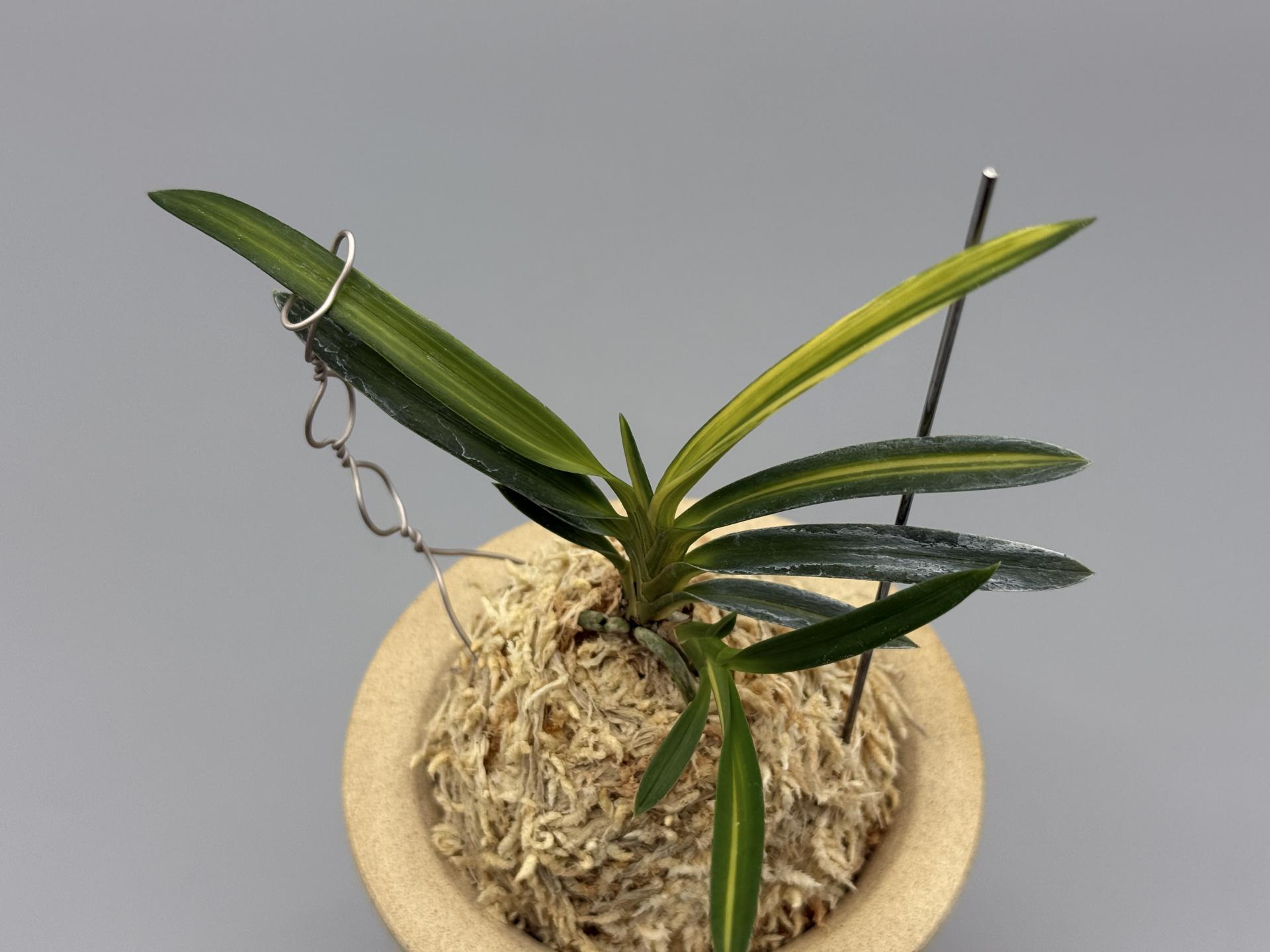 중형의 극황 중투(極黄中透) 품종이다. 명품인 '청광묵(靑光墨)'의 싹(芽) 변이라고 생각한다. 언뜻 생각하면 도저히 믿기 어렵지만, '청광묵'에서 중투(中透)에 감복륜(紺覆輪)으로 변화한 '성광전(星光殿)'의 무늬 색을 극황으로 생각하면 이해가 될 것이다. 아직도 縞가 있는 개체나, 무지(靑)에 가까운 개체는 잎 뒷면에 묵(墨)을 흘리며, 잎 질감이 거친 것 등 무늬 색 이외는 모종인 '청광묵'에 가까운 것을 알 수 있다. 愛知県의 업자가 발견해, 같은 현의 三浦浩男 씨에게 전해져 증식된 것이다. 예(芸)의 안정성은 좋고, 子(신아)가 무지로 나와도, 4~5매째 정도에서 중투 예를 나타낸다. 아직 많은 수에 이르지는 못했지만, 인기 있는 기대품이다. 중형으로 잎은 약간 가늘지만, 선천성의 극황 중투가 들어간다. 청축에 청근으로. 붙음매는 월형이다.
